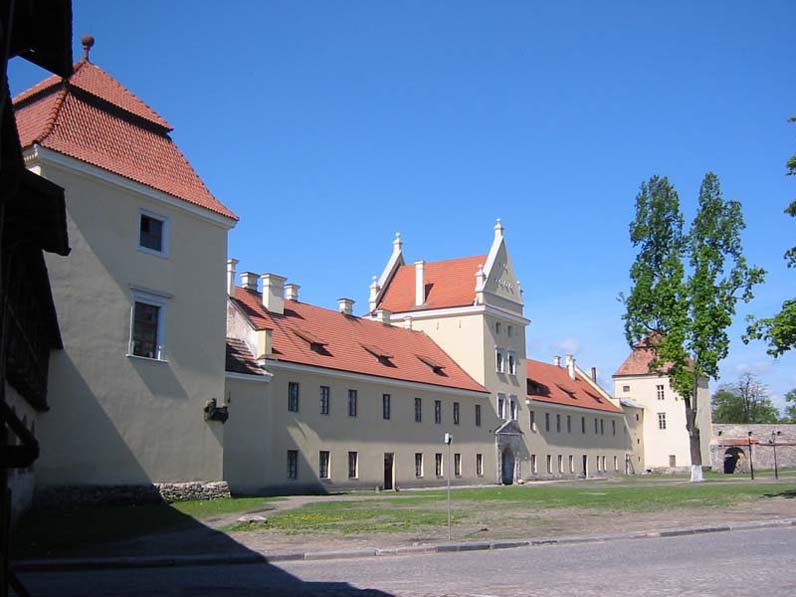 Чотирикутна будова з вежами на кутах, оточений ровом із водою не тільки зовні, а й зі сторони міста, замок був добре захищений від ворожих нападів. Проте, сучасний вигляд не відповідає давньому не має колон, арок, вишуканих скульптур, рову, що доходив в ширині до 17 метрів, та й сам замок просів в землю на 6-7 метрів.
