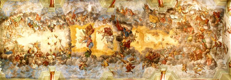 У третій частині, ближче до хорів зображено композицію єдності Церкви: Отці Сходу, святі: Василій Великий, Григорій Богослов, Григорій Ніський та Іван Золотоустий, та Отці Заходу, святі: Августин, Амвросій Міланський, Ієронім та папа Григорій Великий навколо «Всевидючого ока» - ока, вписаного в трикутник, що означає Божу триєдиність, всюдиприсутність та всемогутність. При самій західній стіні зображено ангелів, які грають на різних музичних інструментах, прославляючи Господа Бога.