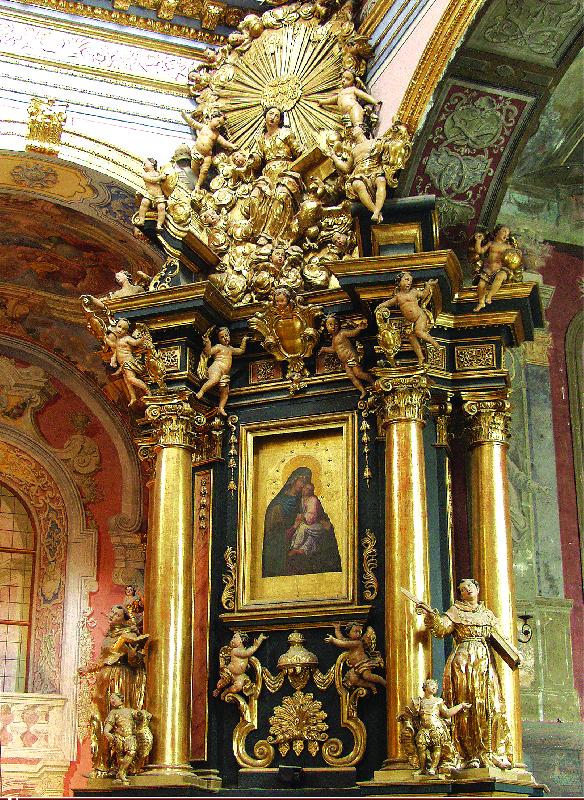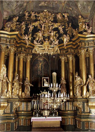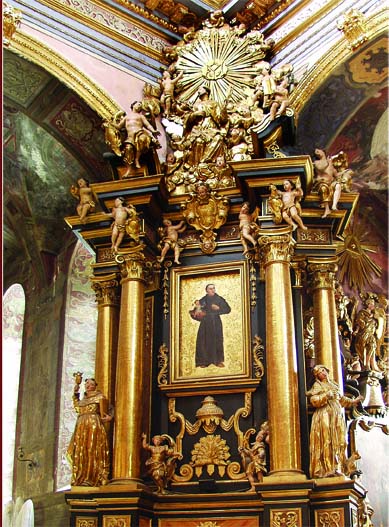 В апсиді пресвітерію розміщено монументальний образ Розп’яття Господа нашого Ісуса Христа. Його автор францисканець із Кракова Францішек Лексицький (помер у 1668 р.). Дослідники вважають образ копією картини Рубенса, однак видно, що подібними є тільки композиція, а техніка виконання, колорит твору належить духові і пензлю Ф. Лексицького.