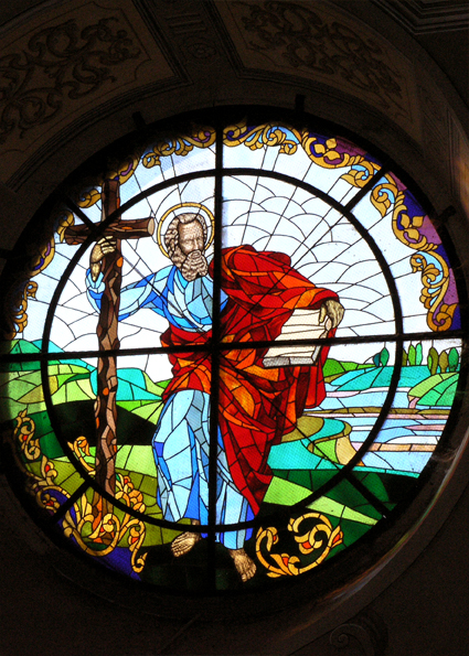 У східній частині, яка є ближчою до головного вівтаря, зображено збір Апостолів в оточенні ангелів та пророків. Посередині — Апостол Андрій, який тримає Х-подібний хрест, трохи нижче Петро і Павло, далі — чотири Євангелисти, а навколо інші Апостоли. У зеніті склепіння, в центрі композиції напис гебрайською мовою «Ягве».