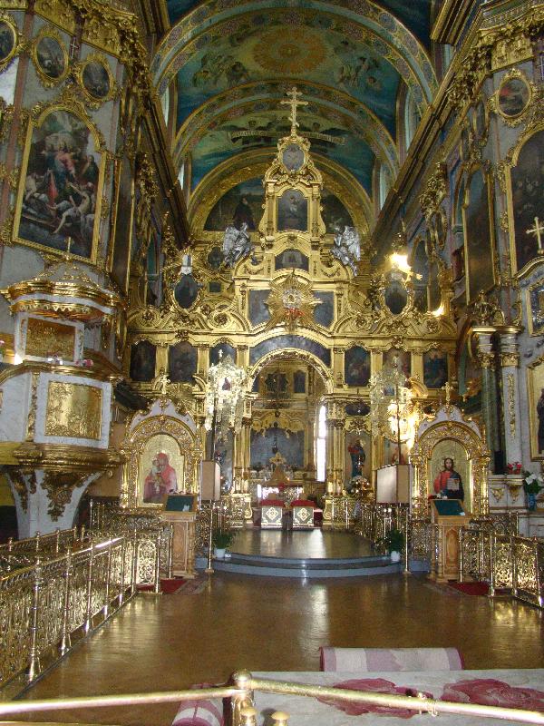 Настінний масляний живопис собору виконаний в 1876 році лаврськими майстрами. Деякі композиції поміщені в масивні ліпні картуші. Збереглися також роботи, виконані в 1807 році здібним художником Лукою Долинським. Живопис інтер'єрів був реставрований в 1980р.