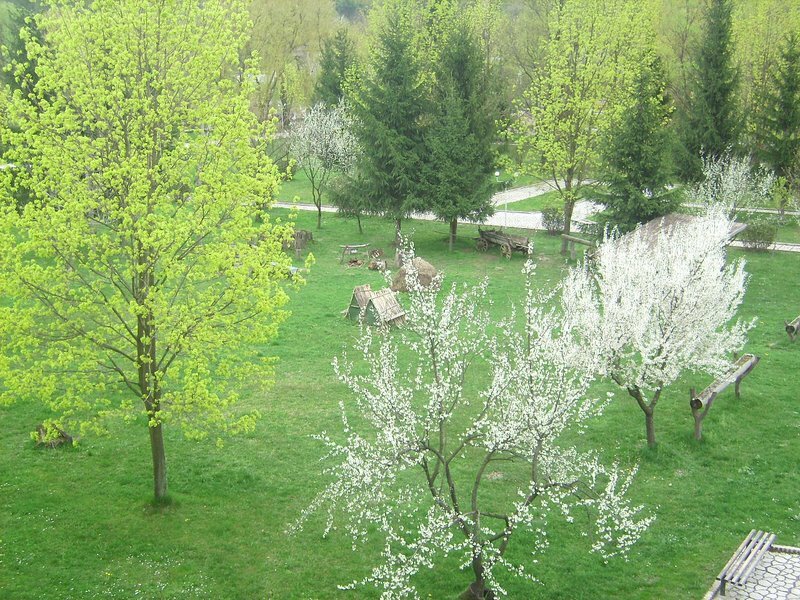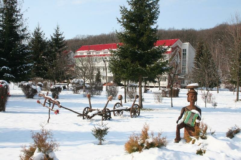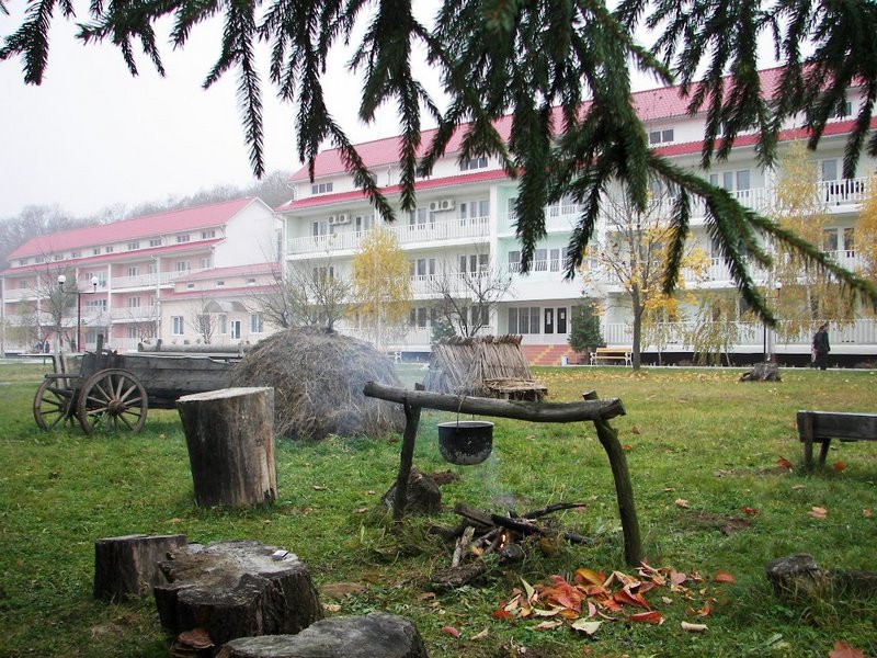 Територія санаторію займає більш ніж 11 га. Тут є все: квітучі клумби і затишні алеї, фонтани і мальовничі куточки для відпочинку, що відтворюють самобутність закарпатської культури минулих сторіч, спортивні майданчики, басейни, дитяче містечко і навіть ... гірська річечка Салба, що бере свій початок у горах і несе свої води у Тису.