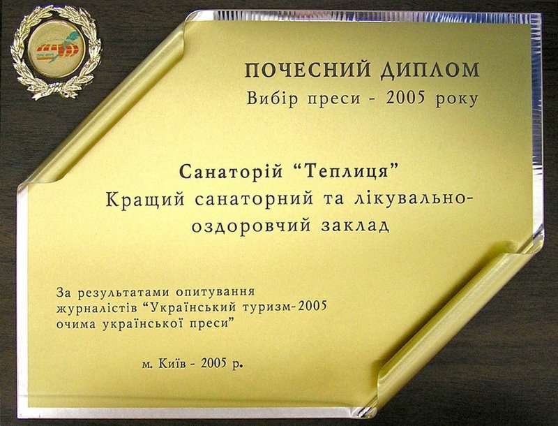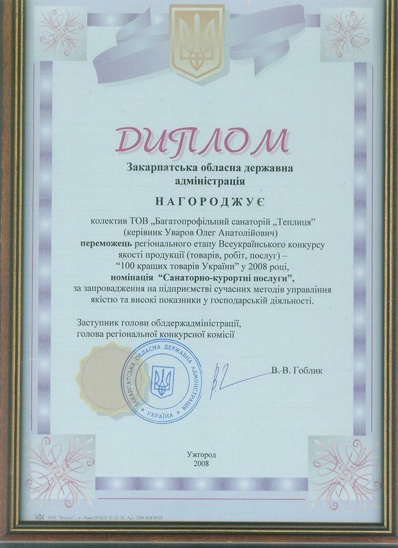 Санаторій – заклад охорони здоров’я вищої категорії акредитації, що підтверджує Акредитаційний сертифікат серії МЗ № 007513 від 29.10.2008р.