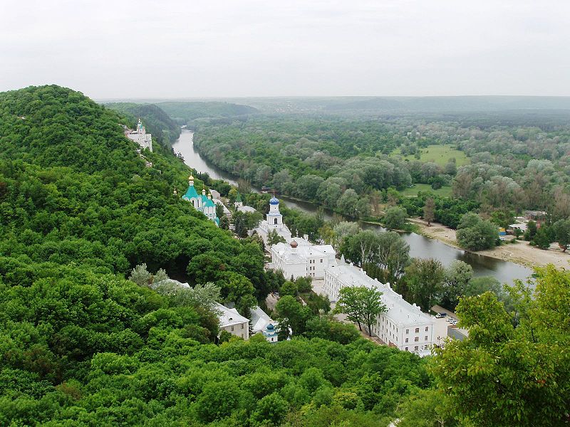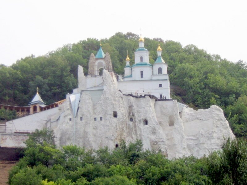 Документально Святі Гори відомі з 1526 р. У писемних джерелах монастир у скелі згадується верше під 1624 р. Існує дві версії щодо заснування монастиря. Відповідно до однієї, монастир заснували ченці Печерської лаври, що пішли з Києва, розореного монголами у середині ХІІІ ст., а за другою версією – афонські монахи, що йшли на Русь по Сіверському Донцю, це місце нагадало їм рідну Святу гору Афон.