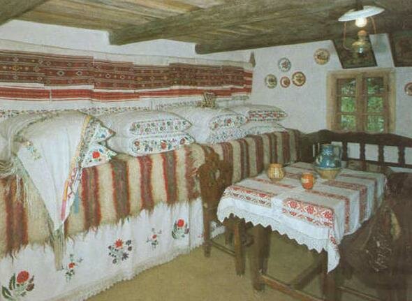 Подібно до географічної карти області — із заходу на схід розташовані садиби і житла з низинних і передгірних районів українського, румунського і угорського населення, а на пагорбі — горян, етнографічних груп українського населення: гуцулів і бойків.