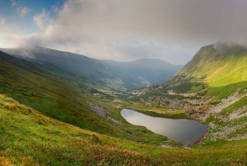 Довжина 134м. ширина 28-44м. глибина до 2,8м. Озеро овальної форми. Береги круті, високі, з кам'янистими розсипами. Живиться атмосферними опадами й ґрунтовими водами. Вода чиста, слабомінералізована. Дно підвищується в східному напрямку, на глибині покрите сірим мулом. Трапляються мікроскопічні ракоподібні. Об'єкт туризму.