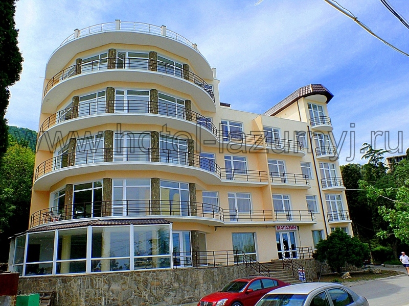 Готель Лазурний відкрив свої двері в 2009 році і розташувався в мальовничому місці Алушти - Професорському куточку, біля підніжжя гори Кастель, де прекрасні умови для відпочинку та оздоровлення.